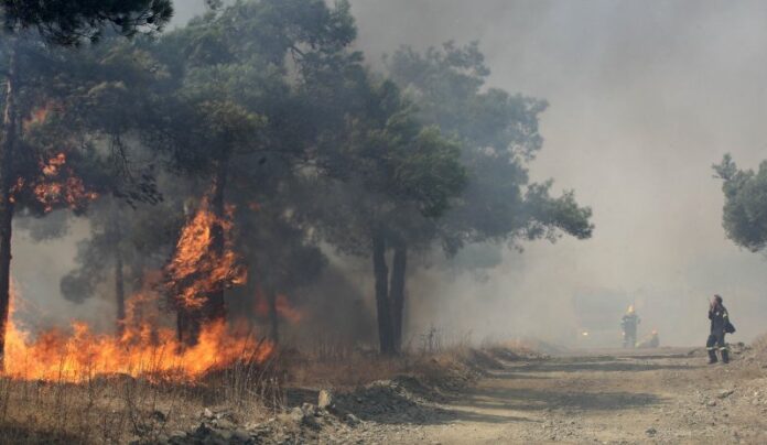 Η φωτιά καίει δασική έκταση.