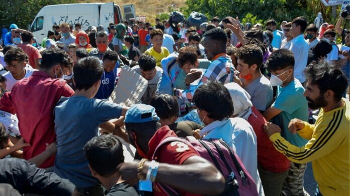 Φωτιά στη Μόρια: Στον δρόμο χιλιάδες μετανάστες – Ουρές και σπρωξίματα για το συσσίτιο