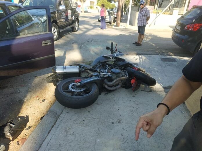 Άλλο ένα τροχαίο δυστύχημα σημειώθηκε στη Ρόδο το μεσημέρι της Δευτέρας, λίγο μετά τις 16:00, όταν συγκρούστηκαν αυτοκίνητο με μηχανή.