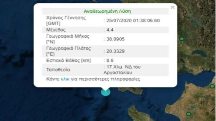 Σεισμός 4,4 Ρίχτερ ανοιχτά του Αργοστολίου