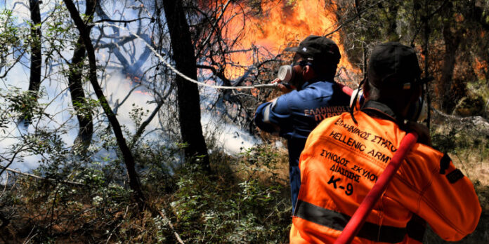 Στην περιοχή επιχειρούν ισχυρές πυροσβεστικές δυνάμεις
