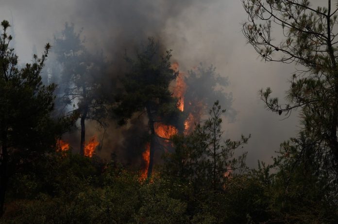 Η πυρκαγιά καίει σε δασική έκταση στην περιοχή...