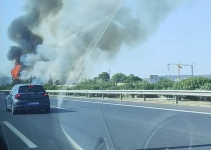 Φωτιά στον παράδρομο της Αττικής Οδού στο Κορωπί – Δείτε βίντεο