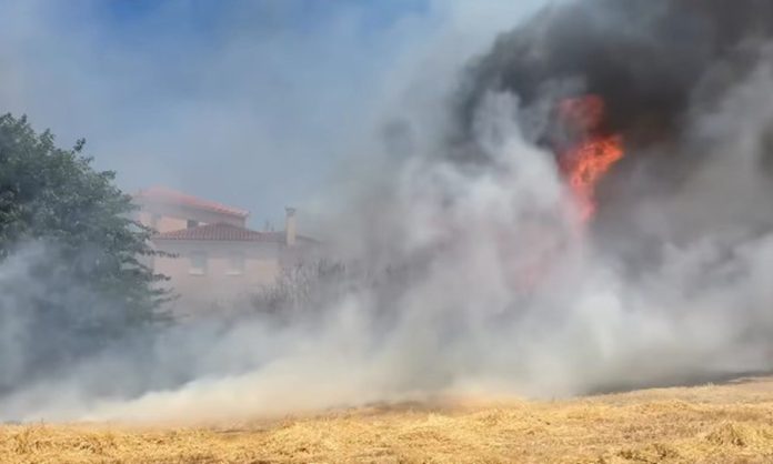 Η φωτιά καίει κοντά στο εκκλησάκι Αγίου Γεωργίου, κοντά στο Αμαδρυάς.