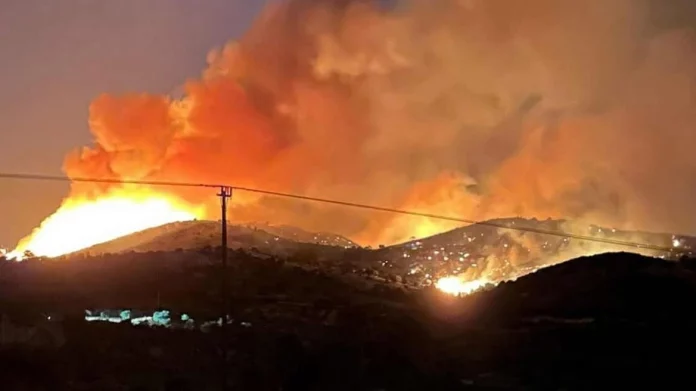 Νωρίτερα είχε σταλεί μήνυμα για εκκένωση στους Τσακαίους - Ενισχύθηκαν οι δυνάμεις της Πυροσβεστικής και πλέον επιχειρούν 160 πυροσβέστες με 45 οχήματα και 8 ομάδες πεζοπόρων τμημάτων