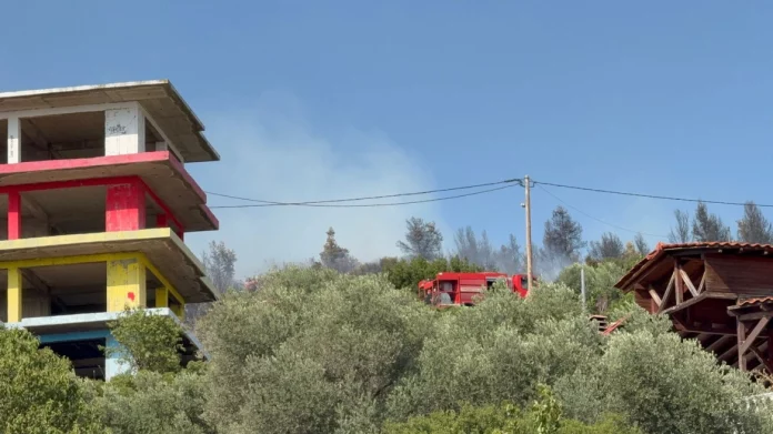 Η πυρκαγιά καίει ξερά χόρτα και χαμηλή βλάστηση χωρίς να απειλεί οικισμούς
