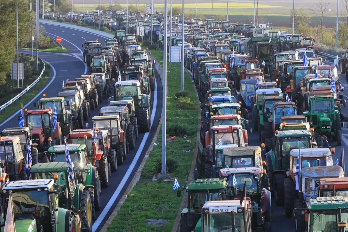 Αγρότες της Αιτωλοακαρνανίας έκλεισαν με τα τρακτέρ τους τον κόμβο της Ιόνιας Οδού στο Χαλίκι
