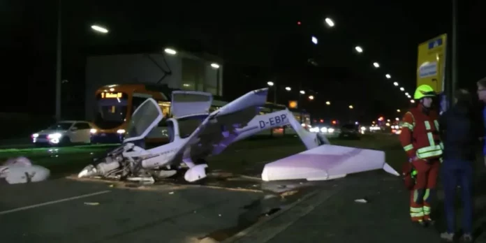 Εντυπωσιακή αναγκαστική προσγείωση πραγματοποίησε μικρό αεροπλάνο το απόγευμα της Παρασκευής στο κέντρο της πόλης Μάνχαϊμ στη δυτική Γερμανία.