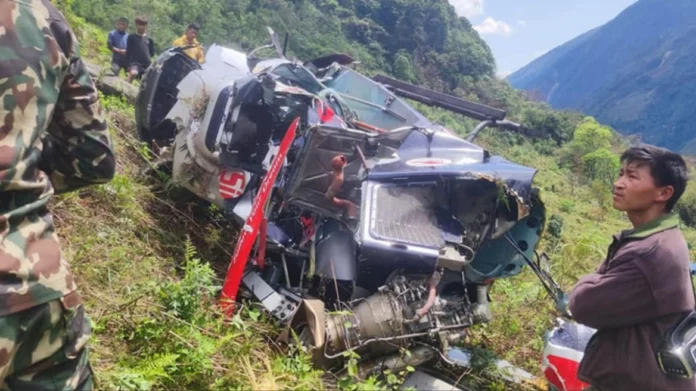 Το ελικόπτερο, που μετέφερε εξοπλισμό για υπό κατασκευή υδροηλεκτρικό έργο στις όχθες του ποταμού Αρούν, προσέκρουσε σε δέντρο λίγο πριν από την προσγείωσή του