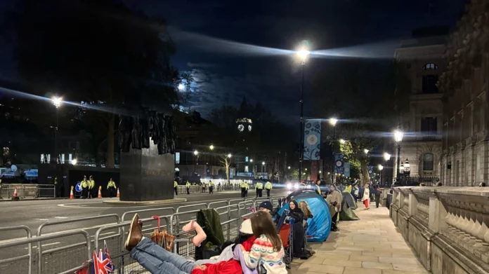 Εν αναμονή της τελετής στέψης του βασιλιά Καρόλου και της βασίλισσας Καμίλα, πολίτες συγκεντρώνονται μπροστά από το Αββαείο του Γουέστμινστερ, αλλά δεν λείπουν και...
