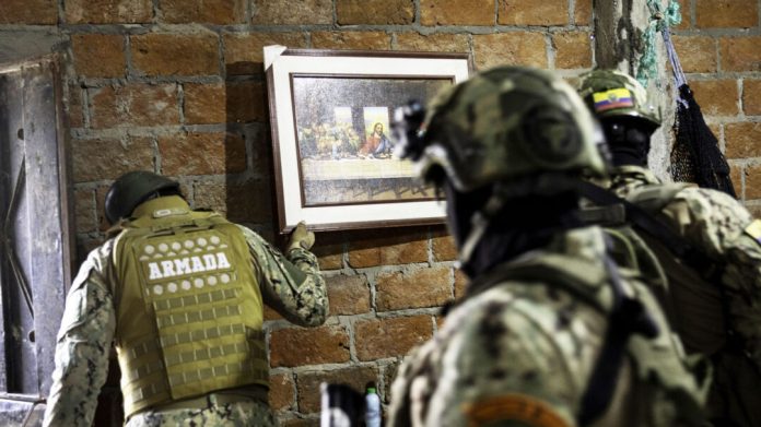 Στρατιώτες του Ισημερινού πραγματοποιούν έφοδο στο Γουαγιακίλ, στο...