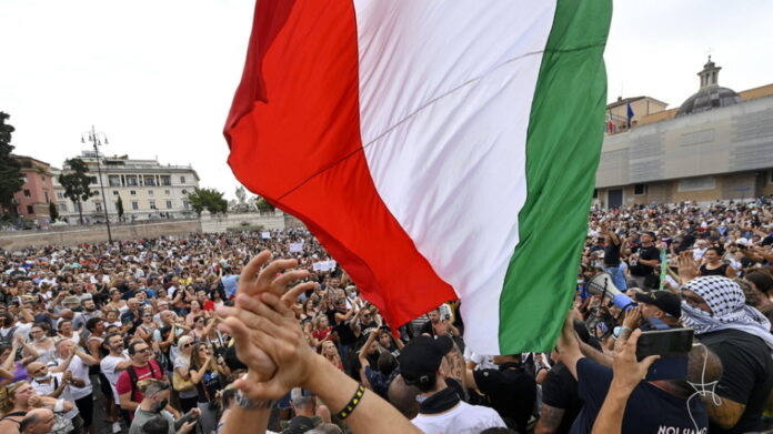 Ιταλία: Διαδήλωσαν αντιεμβολιαστές με συνθήματα κατά του Ντράγκι και του «πράσινου πάσου»