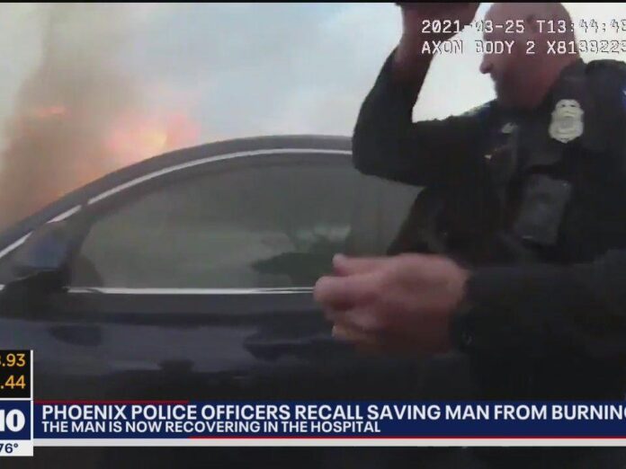 Η αστυνομία του Φοίνιξ στις ΗΠΑ κυκλοφόρησε εκπληκτικά πλάνα ενός αξιωματικού που διασώζει έναν αναίσθητο άνδρα από ένα φλεγόμενο όχημα την...