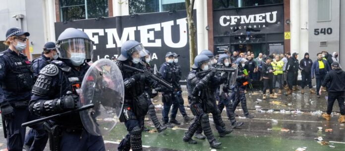 Εικόνες νότιας Αμερικής στη Μελβούρνη: Πλαστικές σφαίρες κατά διαδηλωτών οικοδόμων για το εμβόλιο COVID – (VIDEO)