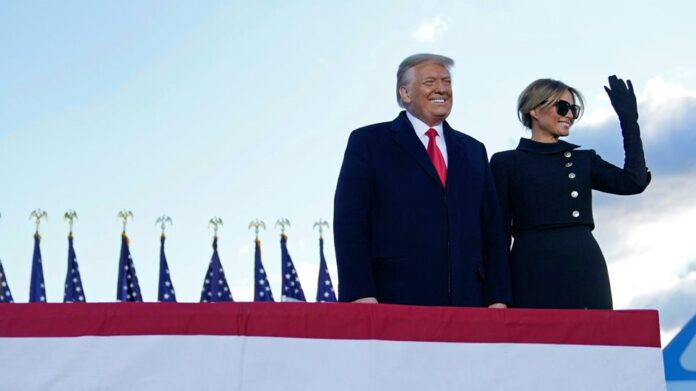 Ο απερχόμενος πρόεδρος των ΗΠΑ συνοδευόμενος από τη σύζυγό του Μελάνια επιβιβάστηκαν στο Marine One και κατευθύνθηκαν στην αεροπορική βάση Άντριους, απ' όπου απηύθυνε...
