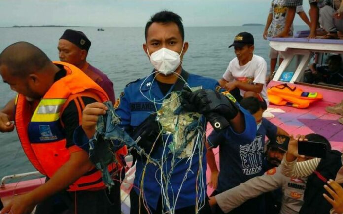 Τα συντρίμμια του αεροσκάφους της εταιρείας Sriwijaya Air, τα ίχνη του οποίου...