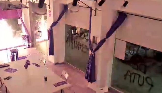 Τα γραφεία των Podemos στην Καρταχένα χτυπήθηκαν από μολότοφ και πήραν φωτιά. Το video που ανήρτησε ο Πάμπλο Ιγκλέσιας.