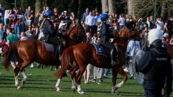 Έφιπποι αστυνομικοί και υδροφόρες διέλυσαν τεράστιο υπαίθριο κορωνοπάρτι στις Βρυξέλλες