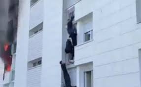 Εικόνες που συγκινούν: Σχημάτισαν ανθρώπινη σκάλα για σώσουν βρέφος και γονείς από τις φλόγες-(VIDEO)
