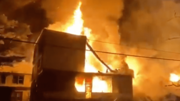 Η φωτιά προκλήθηκε έπειτα από έκρηξη που σημειώθηκε στο κτίριο με αποτέλεσμα να καταρρεύσει η οροφή του