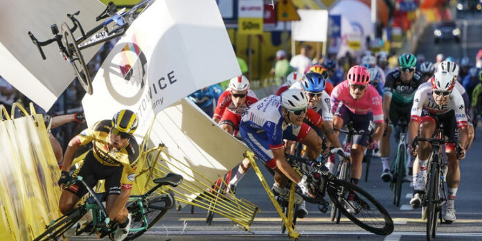 Ο Φάμπιο Γιάκομπσεν στην διάρκεια του Tour να συντρίβεται σε προστατευτικά κιγκλιδώματα, μετά από μάχη με...