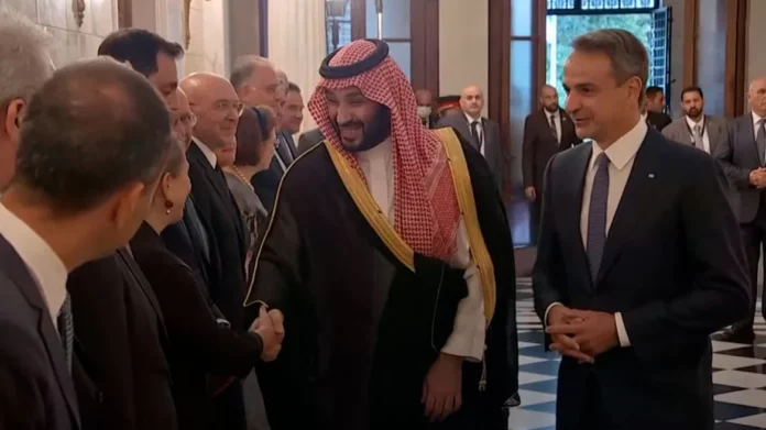 Ο πρωθυπουργός Κυριάκος Μητσοτάκης έχει συνάντηση με τον πρίγκιπα Διάδοχο του Θρόνου της Σαουδικής Αραβίας Μοχάμεντ μπιν Σαλμάν.