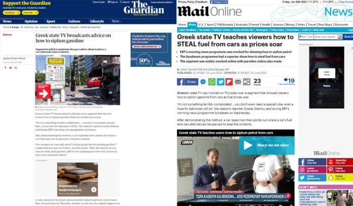 Guardian και Daily Mail φιλοξένησαν στις ιστοσελίδες τους το απίθανο ρεπορτάζ της ΕΡΤ για το πώς μπορεί κάποιος να κλέψει βενζίνη από σταθμευμένο αυτοκίνητο.