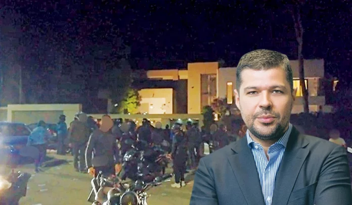 Μέλη της αναρχικής συλλογικότητας έξω από τη βίλα του Γιώργου Στάσση, στον απόηχο των σκανδάλων