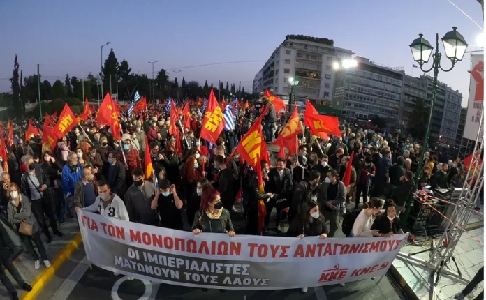 Εικόνες από το συλλαλητήριο του ΚΚΕ στο Σύνταγμα για τον πόλεμο στην Ουκρανία