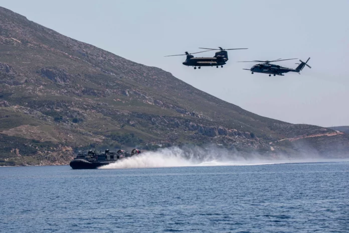 Εντυπωσιακή απόβαση στην Σκύρο των Πεζοναυτών Ελλάδας και ΗΠΑ κατά την διάρκεια της άσκησης «Μέγας Αλέξανδρος», που είναι σε εξέλιξη.
