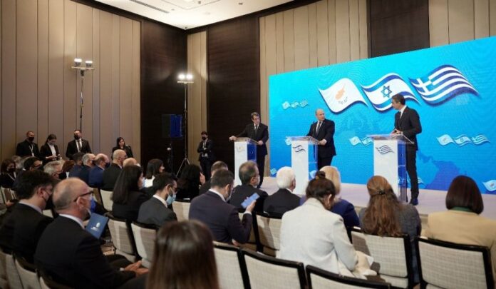 Η τριμερής Ελλάδας-Κύπρου-Ισραήλ συμβάλλει σταθερά στην προώθηση της περιφερειακής ειρήνης, της ευημερίας και της ασφάλειας, δήλωσε ο πρωθυπουργός Κυριάκος Μητσοτάκης