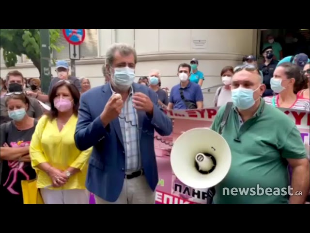Με την ντουντούκα ο Παύλος Πολάκης στη συγκέντρωση των υγειονομικών – «Πάρτε πίσω τις αναστολές»