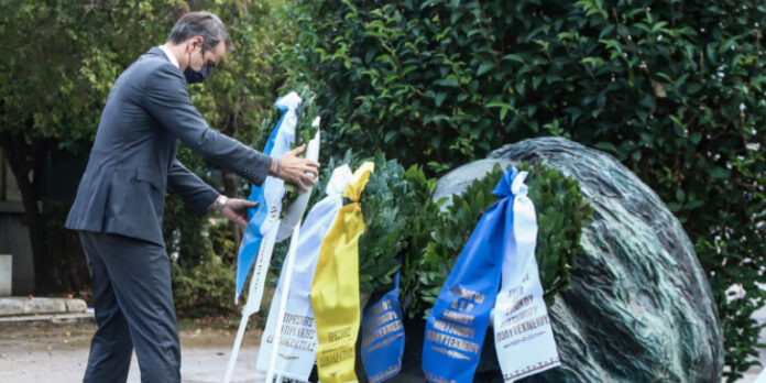 O Μητσοτάκης κατέθεσε στεφάνι στο Πολυτεχνείο