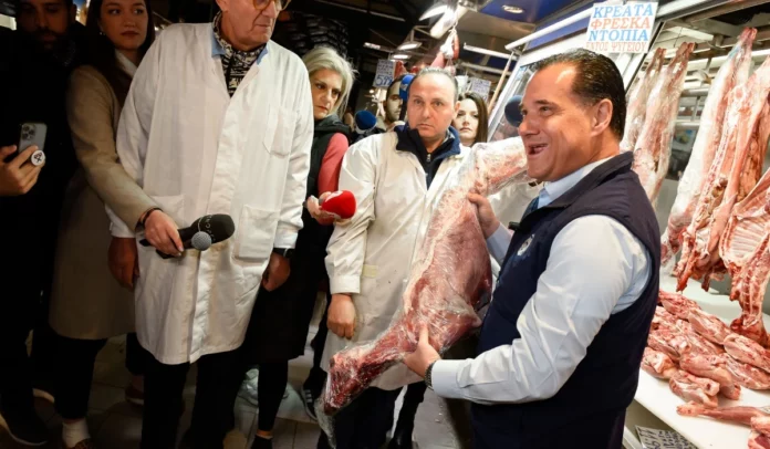 Ο Άδωνις σε ρόλο… χασάπη – Έδειχνε αρνί στη Βαρβάκειο