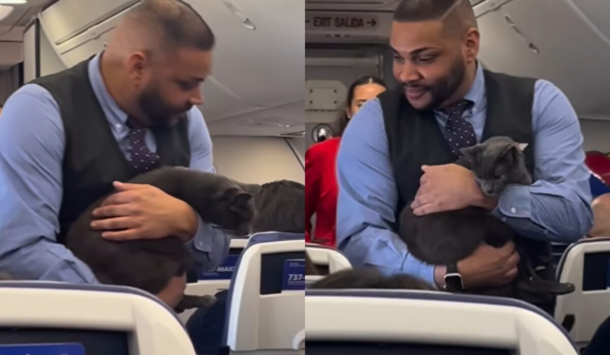 Ο αεροσυνοδός, αντιλαμβανόμενος την κατάσταση, πήρε το γατάκι στην αγκαλιά του και το ενέταξε με χιούμορ στην επίδειξη ασφαλείας πριν από την απογείωση.