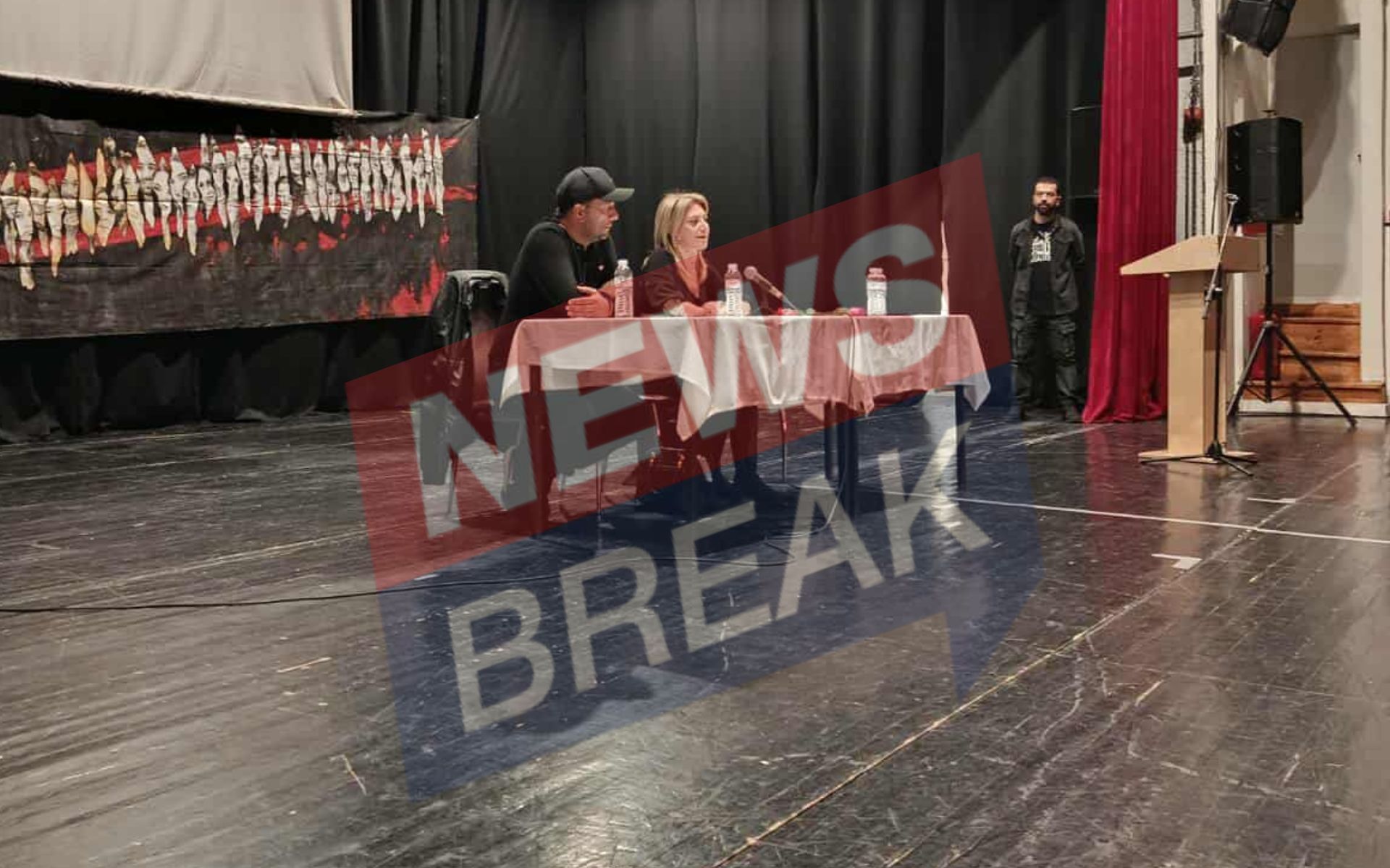 Ασφυκτικά γεμάτο είναι αυτή την ώρα το Δημοτικό Θέατρο της Νάουσας, «Μίκης Θεοδωράκης», για την ομιλία της Μαρίας Καρυστιανού και του Πάνου Ρούτσι που είναι καλεσμένοι του Συλλόγου SOS Βέρμιο.