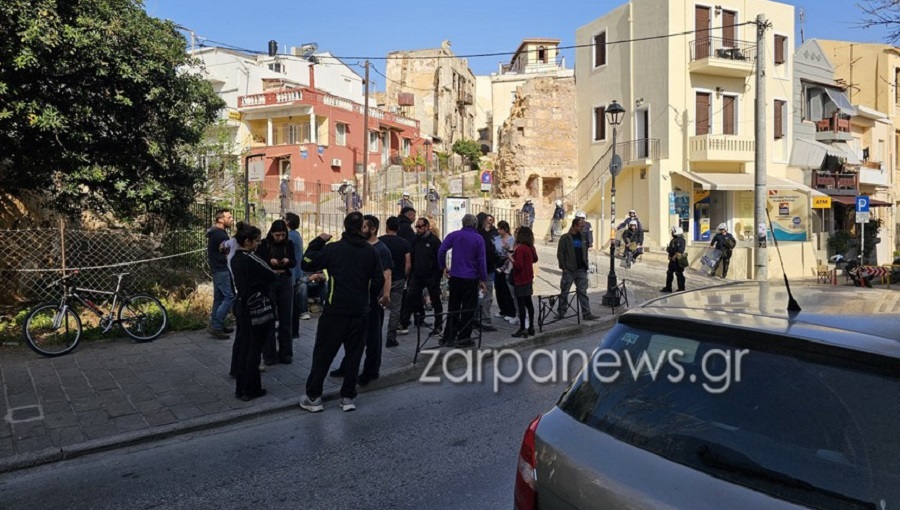 Οργανωμένη επιχείρηση της αστυνομίας στήθηκε νωρίς το πρωί της Δευτέρας 1 Απριλίου στο λόφο Καστέλι, πάνω από το παλιό λιμάνι των Χανίων. Στο σημείο βρέθηκαν ισχυρές αστυνομικές δυνάμεις των ΜΑΤ και ειδικοί φρουροί.