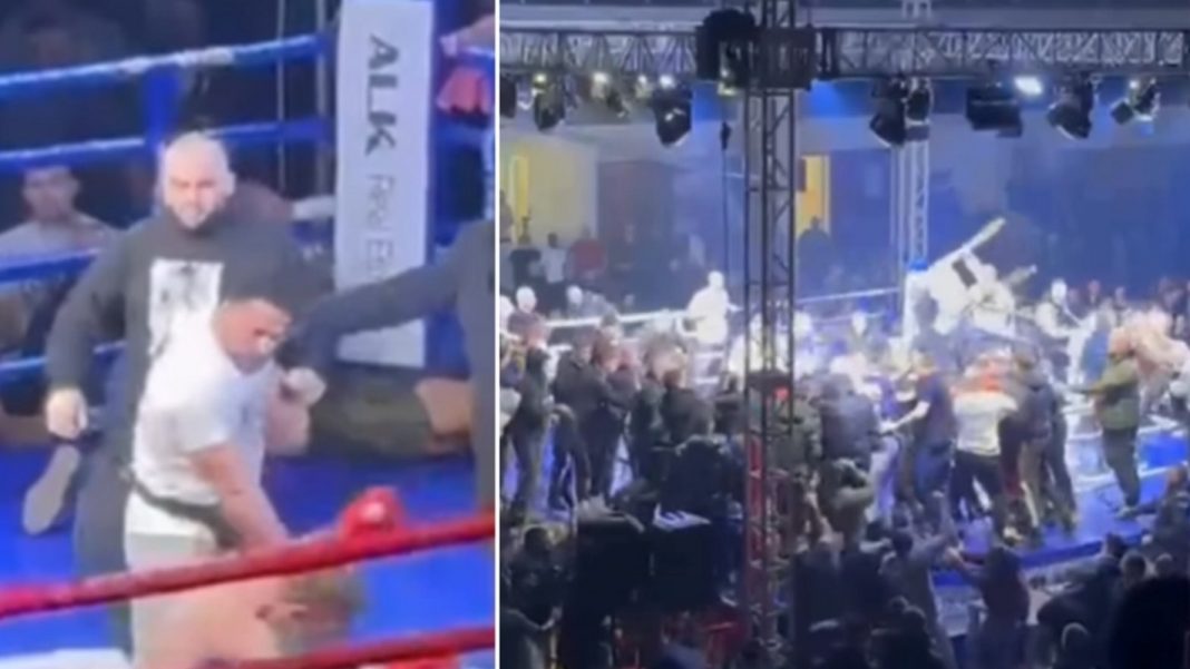Η κατάσταση ξέφυγε αμέσως από κάθε έλεγχο, με περίπου 50 άτομα να εισβάλλουν στον αγωνιστικό χώρο και να ξεσπά γενική σύρραξη. Οι διοργανωτές της εκδήλωσης δεν κατάφεραν να επαναφέρουν την τάξη, δηλώνοντας πως δεν υπήρχε αρκετό προσωπικό ασφαλείας για την αντιμετώπιση του επεισοδίου.