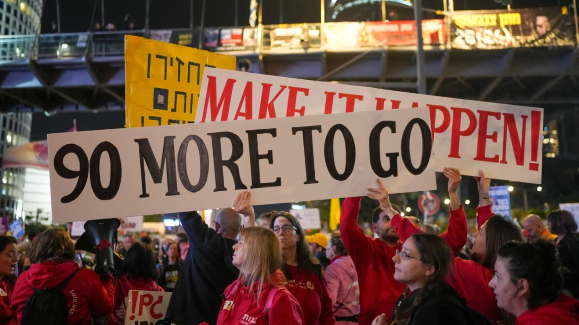 Έγιναν συγκεντρώσεις στο Τελ Αβίβ, στη Χάιφα, στην Ιερουσαλήμ και αλλού. Συμμετέχοντες και συμμετέχουσες κράταγαν πλακάτ με συνθήματα όπως «σταματήστε τον πόλεμο», «μην αφήσετε κανέναν όμηρο πίσω», «90 ημέρες ακόμα για να το κάνουμε να συμβεί».