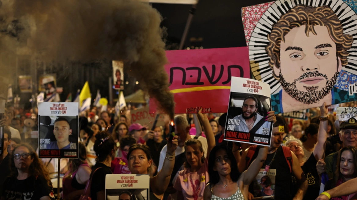«Αύριο θα οδηγήσουμε τη χώρα σε πάγωμα», δήλωσε απευθυνόμενη στους διαδηλωτές η Εϊνάβ Ζανγκάουκερ, ο γιος της οποίας, ο Ματάν, είναι ένας από τους περίπου 20 ζωντανούς ομήρους που εξακολουθούν να κρατούνται στη Λωρίδα της Γάζας. Η Ζανγκάουκερ αναφερόταν σε προγραμματισμένη για σήμερα πανεθνική απεργία στο Ισραήλ.