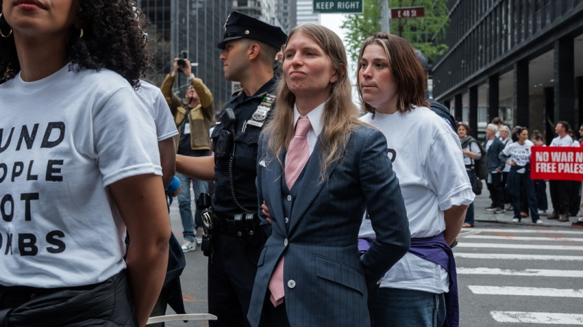Οι διαδηλωτές, περίπου 200 στο σύνολό τους, απέκλεισαν για κάτι λιγότερο από μια ώρα μεγάλη λεωφόρο στο Μανχάταν, σε ένδειξη διαμαρτυρίας για τη συνεχιζόμενη στρατιωτική υποστήριξη των ΗΠΑ στο Ισραήλ.
