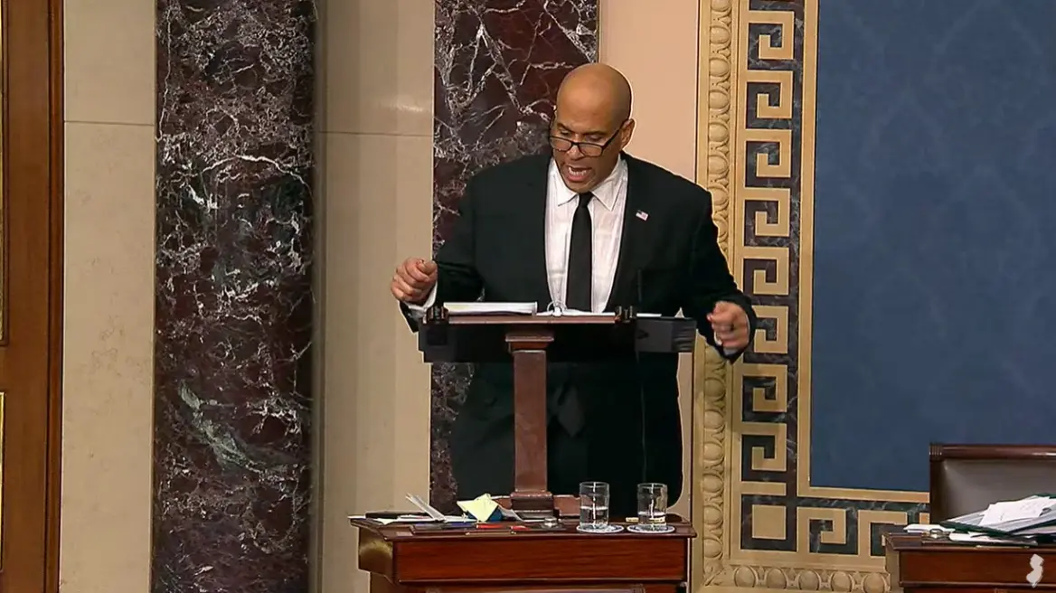 Ο Μπούκερ, που είναι πρώην αθλητής του αμερικανικού ποδοσφαίρου, άρχισε την ομιλία του στις 19.00 της Δευτέρας και δεκατέσσερις ώρες αργότερα, γύρω στις 9 το πρωί της Τρίτης, συνέχιζε να μιλάει, πάντα όρθιος.