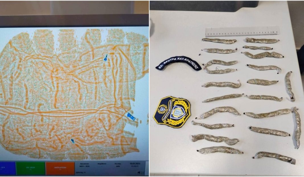Μέσα στο μπουφάν όμως, όπως βλέπετε και στις φωτογραφίες που εξασφάλισε το iEidiseis, είχε «ράψει» 22 σακουλάκια (φιξάκια) ακατέργαστης κάνναβης συνολικού βάρους 33,5 γραμμαρίων.