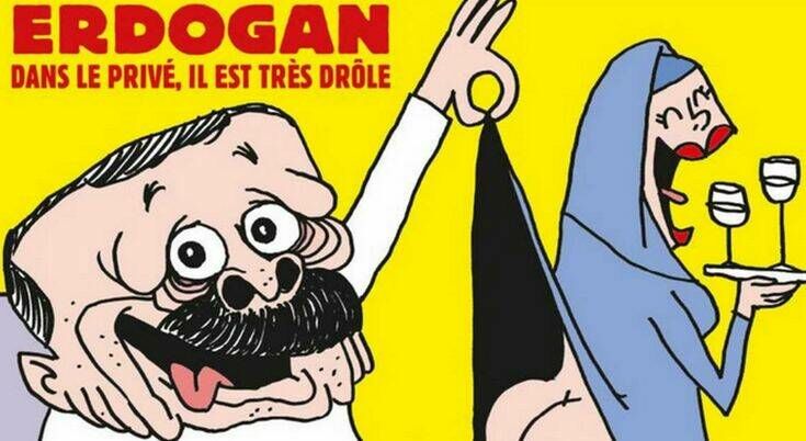 Νέα ένταση μεταξύ Γαλλίας και Τουρκίας προκαλεί η τελευταία γελοιογραφία του γαλλικού σατιρικού περιοδικού Charlie Hebdo, που απεικονίζει τον πρόεδρο Ερντογάν ημίγυμνο, βυθισμένο στην πολυθρόνα, να σηκώνει το παραδοσιακό ρούχο μιας μουσουλμάνας.