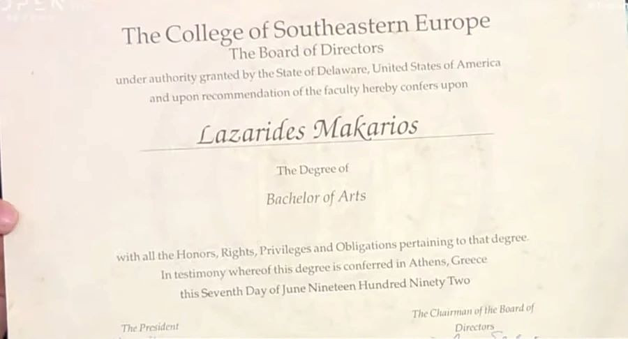 Την αποκάλυψη για τον διορισμό του Μακάριου Λαζαρίδη με πτυχίο κολλεγίου σε θέση που απαιτούσε πτυχίο ΑΕΙ, διαδέχονται δύο νέες εκπλήξεις: το κολλέγιο ήταν «μαϊμού» και σύρθηκε στα δικαστήρια, ενώ υπήρξε και δεύτερος διορισμός του Λαζαρίδη στο Δημόσιο, πάλι ως αποφοίτου πανεπιστημίου, αλλά με το ίδιο πτυχίο του «κολλεγίου». Τα αποκαλυπτικά έγγραφα.