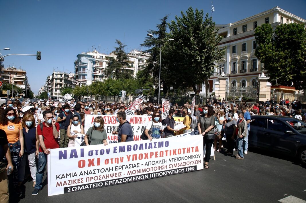 Συγκεκριμένα, στις 11:00 το πρωί μέλη της ΠΟΕΔΗΝ θα συγκεντρωθούν στην πλατεία Αριστοτέλους και στην 3η ΥΠΕ όπου θα πραγματοποιήσουν παράσταση διαμαρτυρίας, στο πλαίσιο και της πανελλαδικής στάσης εργασίας. Μεταξύ άλλων ζητούν να εφαρμοστεί άμεσα η Ευρωπαϊκή Οδηγία που έχει ενσωματωθεί στο Ελληνικό Δίκαιο που χαρακτηρίζει τον covid-19 ως επαγγελματική νόσο. Να ενταχθεί στον κανονισμό επαγγελματικών νόσων του Υπουργείου Εργασίας και να χαρακτηριστεί ο θάνατος Υγειονομικών από covid-19, ως εργατικό ατύχημα. Όσον αφορά τους εμβολιασμούς, η ΠΟΕΔΗΝ σημειώνει εκτός άλλων σε σχετική ανακοίνωση ότι, η διασπορά του ιού στα Νοσοκομεία δεν οφείλεται στο υγειονομικό προσωπικό, αλλά στις παθογένειες του συστήματος, ενώ όπως υποστηρίζει, η δημόσια υγεία στερείται τις υπηρεσίες 7.000 υγειονομικών.