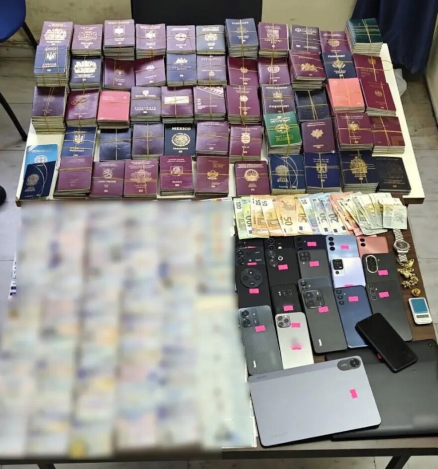 Στη συνέχεια, οι αστυνομικοί εντόπισαν τον 21χρονο κατηγορούμενο και, μετά από έρευνες στο σπίτι του και σε δεύτερη οικία που χρησιμοποιούσε ως χώρο απόκρυψης, βρέθηκαν και κατασχέθηκαν 615 διαβατήρια, 307 ταυτότητες, διπλώματα οδήγησης και άδειες παραμονής, ηλεκτρονική ζυγαριά ακριβείας και το χρηματικό ποσό των 890 ευρώ.