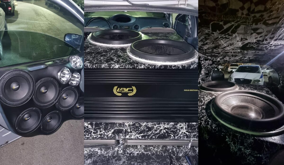 12 ηχεία στις πόρτες , 6 κόρνες ηχείων (ενισχυτές), 2 μεγάλα ηχεία και ενισχυτές μάρκας TRF όπου επιτυγχάνουν απόδοση ήχου έως και 15.000 W RMS , όπως τους είπε ο οδηγός που συμμετέχει σε διαγωνισμούς SPL (Sound Pressure Level).