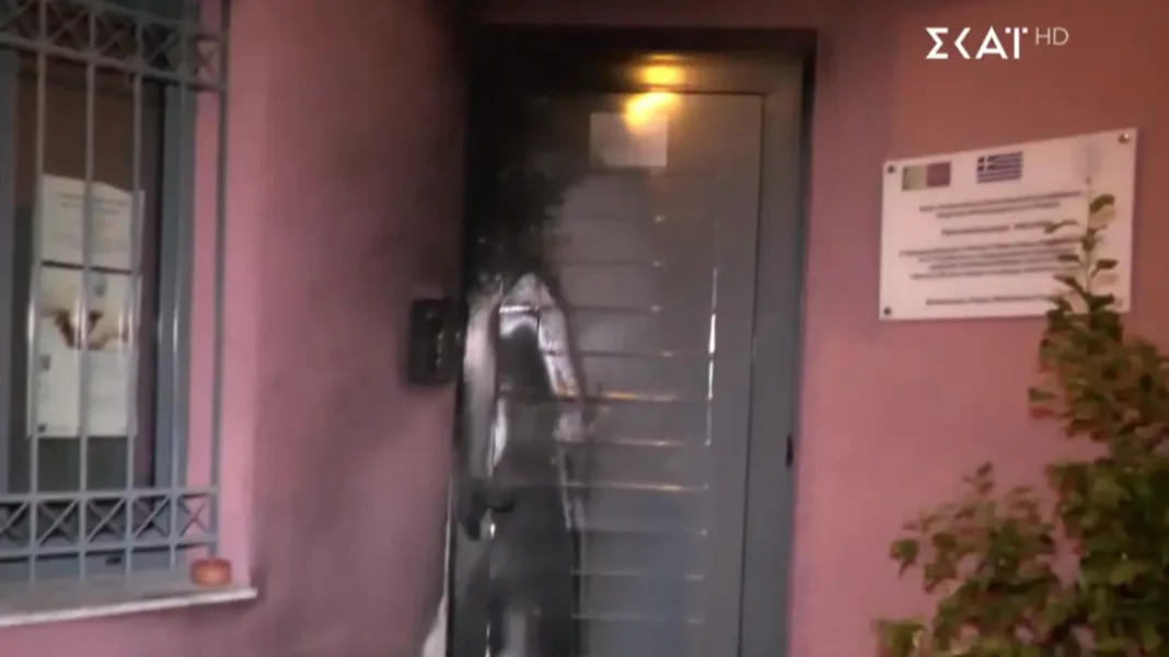Από την έκρηξη και τη φωτιά προκλήθηκαν υλικές ζημιές στην είσοδο του κτηρίου που βρίσκεται στην οδό Ηπείρου.
