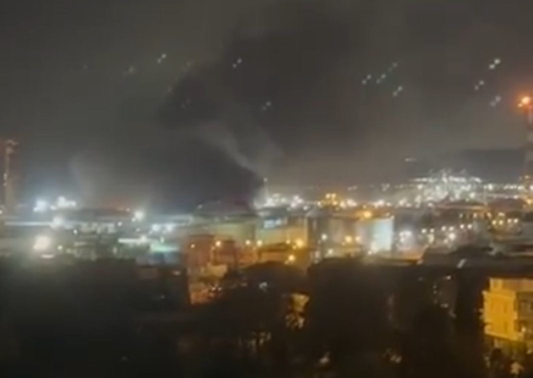 Εικόνες δείχνουν πυκνούς καπνούς να υψώνονται πάνω από το διυλιστήριο.
